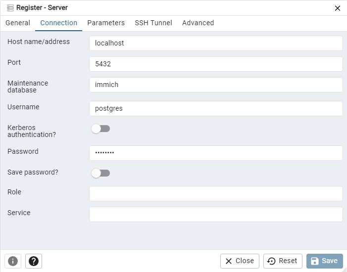 A short guide on connecting pgAdmin to Immich.