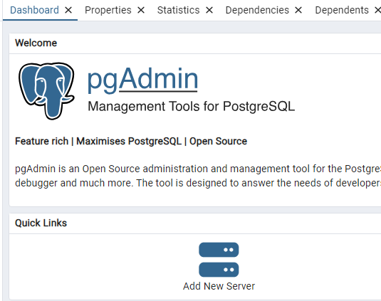 Open pgAdmin and click "Add New Server".